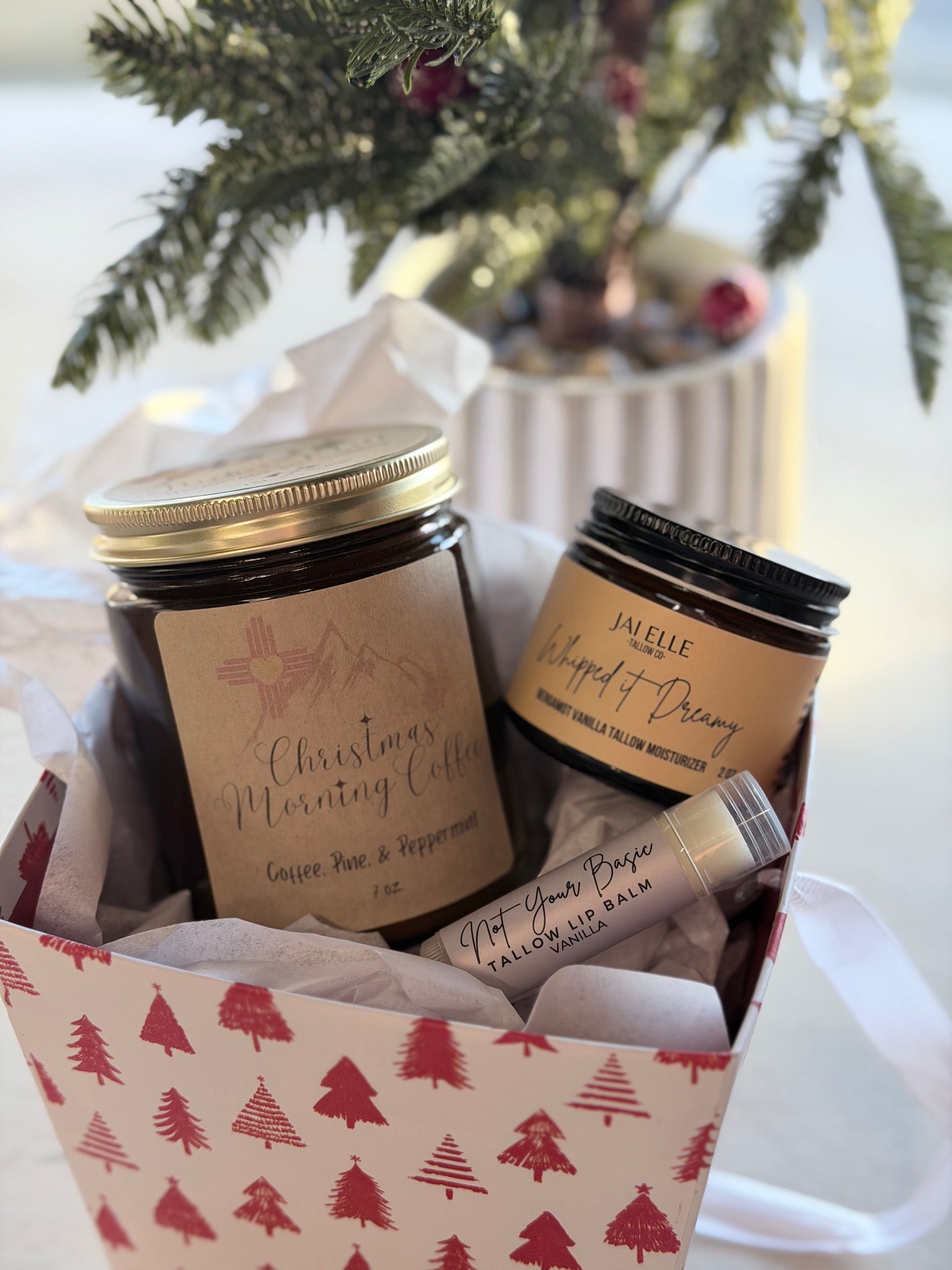 A celebration of warmth and wonder. The Glow of the Season Gift Set combines a comforting holiday candle from FlickerMill, nourishing face and body tallow from Jai Elle Tallow Co., hand-wove artisan wall art, aromatherapy mist, and a guided meditation from Olivia Mead, all designed to restore balance and ignite your inner light during the season of darkness & restoration. Wrap yourself in the calm and glow of the holidays with this beautifully curated collection of handmade gifts.